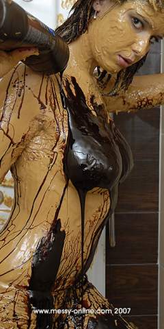 Wetandmessyfun KT got rubbed down on an inflatable covered with molasses by Stacey