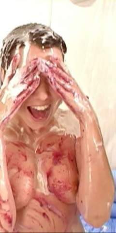 Messymissmia got rubbed down on an inflatable covered with pies by MrMuck