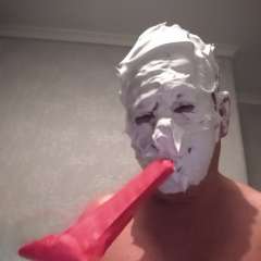 LeRex was surprised by MessyMegan with a big sloppy cream pie to the face